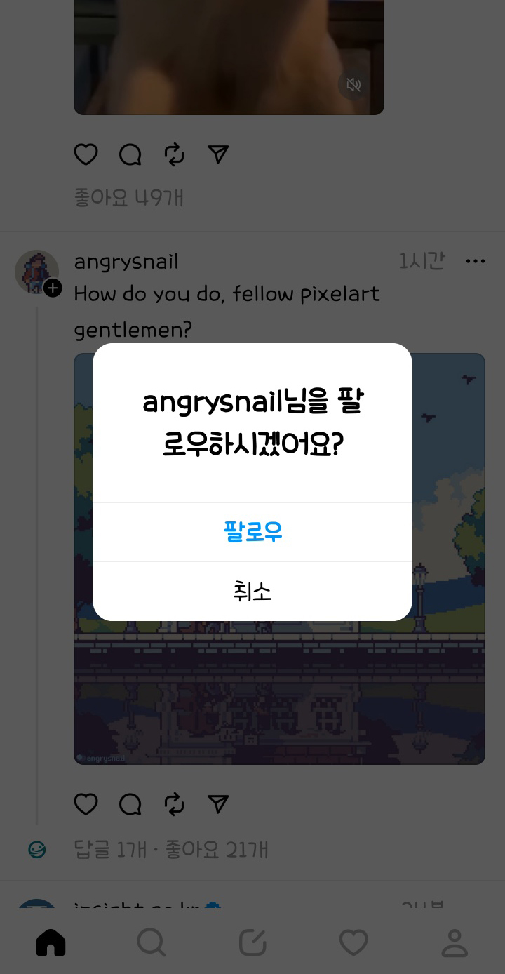 관심있는 사용자가 보인다면 살포시 쓰팔(스레드 팔로우)해보세요~