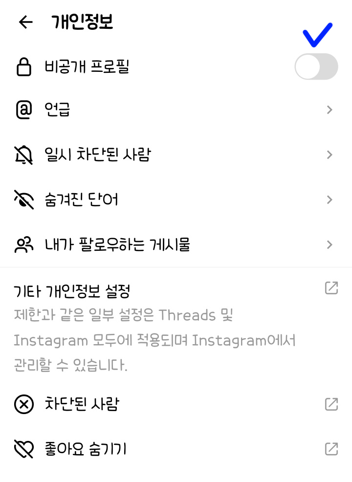 그리고 프로필 공개/비공개 추후 상단에 아이콘 클릭으로 변경가능해요.